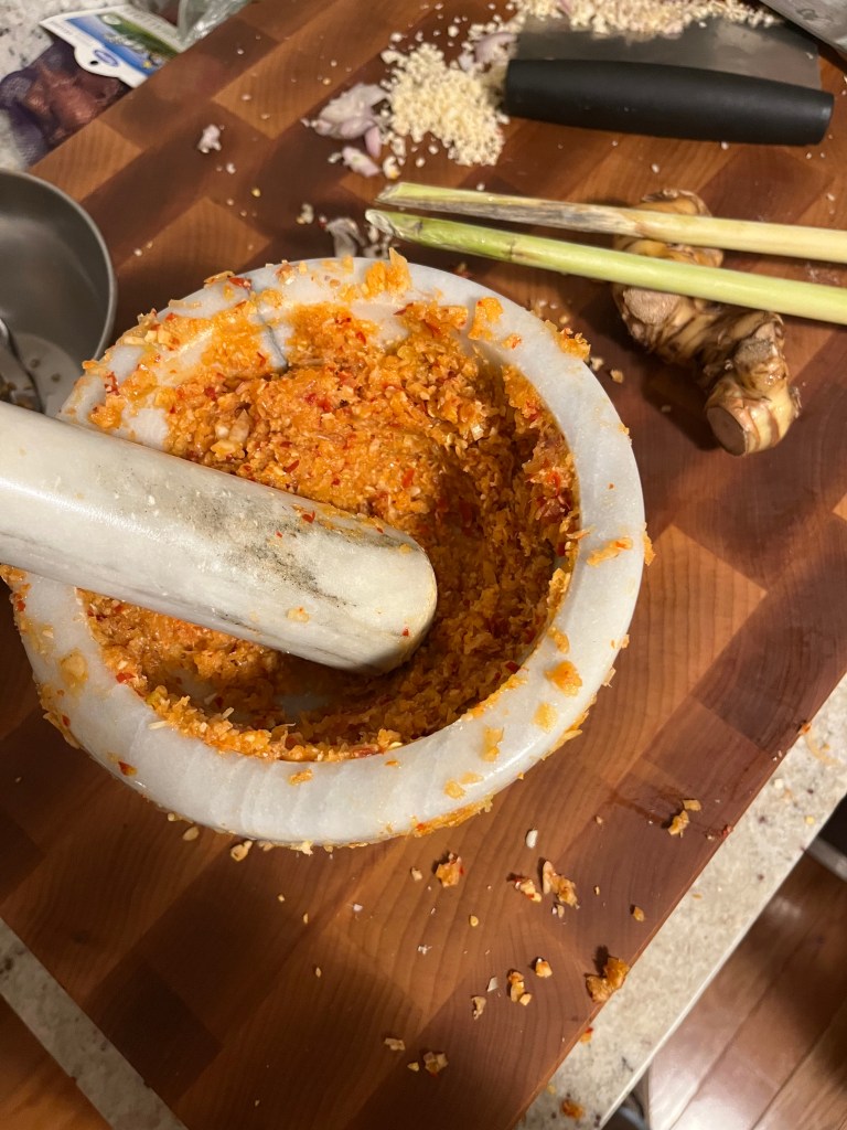 Spicy Catfish and Jackfruit Curry, a recipe from the northern region of Thailand, checks a number of boxes for me: I get to work with catfish and jackfruit, both new ingredients for me. This also has a notable amount of galangal in the curry paste, which I have not worked with in a couple years. It’s also a curry that I can make heaps of and eat for a few days.