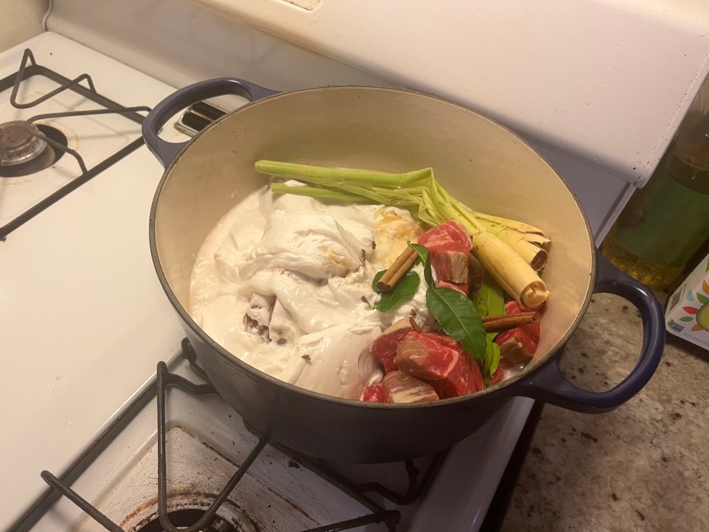 The dish turned out great. There is plenty of thick sauce to go with rice. I made a slightly larger batch (1.5x) and found that cooking it for 3 hours instead of 2 resulted in a better consistency. It would be good to pair with some vegetables; fortunately, Fire Islands has extensive menu options for every recipe. I elected to also cook a vegetable stir-fry.