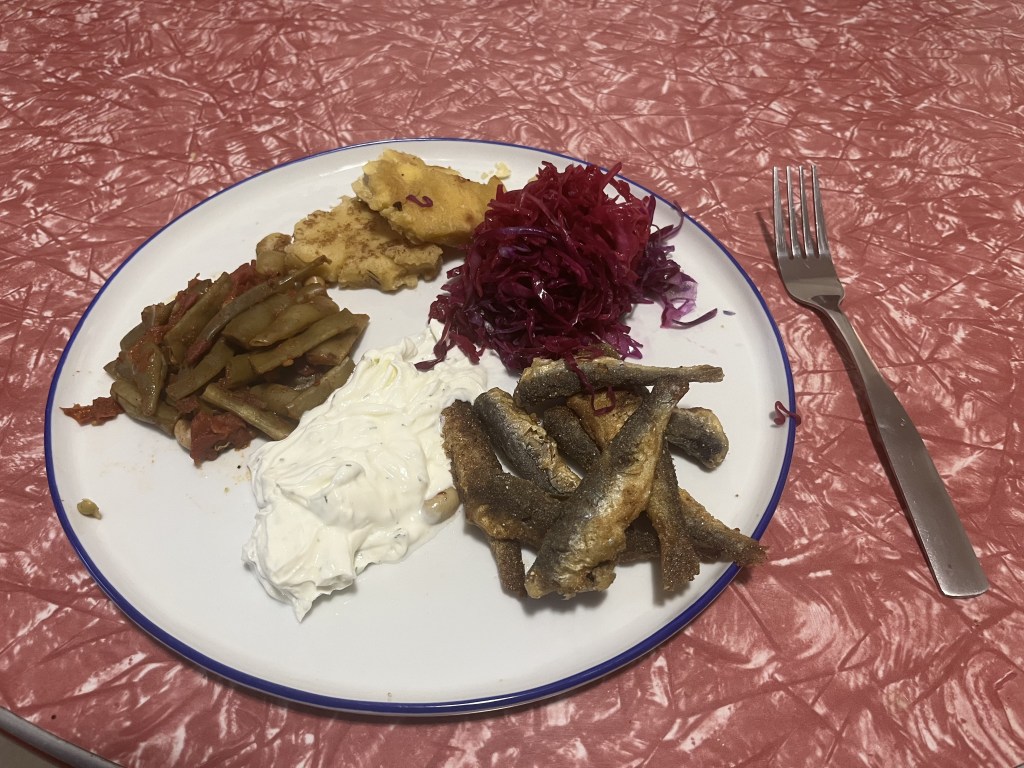 After taking a break from cooking to move into a new apartment and job, I am back at it and looking to prepare Turkish, Japanese, Portuguese, Oaxaca, Cretan, and Peruvian meals in the coming weeks. I particularly would like to highlight fresh seafood from some of my local markets now that the mushroom foraging season appears to be very much over. Today, I decided to build a meal around some fermented Turkish pickled string beans I made back in August. According to Robyn Eckhardt’s Istanbul & Beyond, these pickles can be served along with pan-fried sardines, anchovies, or sand dabs to make a classic lunch served on the Black-Sea coast of Turkey. I particularly like how it includes both quick & cold pickles as well as stir-fried fermented pickles; in this way it reminds me of one of my all-time favorite dishes, Cumin-Scented Lamb from the Mission Chinese Cookbook.