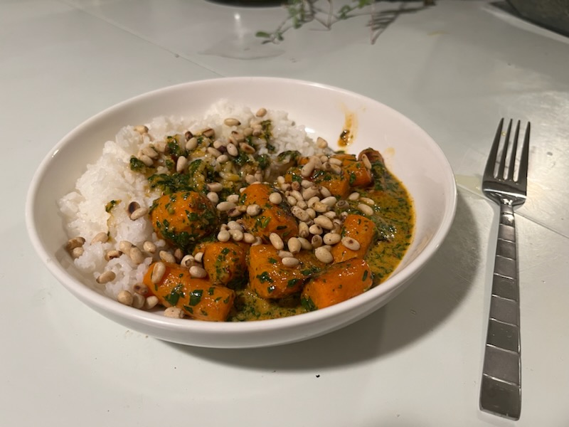 Tasting Notes: The sauce and clams in this dish were amazing! The pork was dry and tough though; this cut needs more attention during the cooking than I gave it. The most popular English versions of this dish online actually braise the pork, so that may be worth trying. It could be that the traditional version, which uses the loin, has somewhat chewy and dry pork. The kale seems fairly superfluous; I was mostly hunched over the clam and pork bowl without remembering this side, but I’m glad I made a green vegetable nonetheless. Going to try to make some “heavenly” salt-cod the next time I cook from this book, I think!